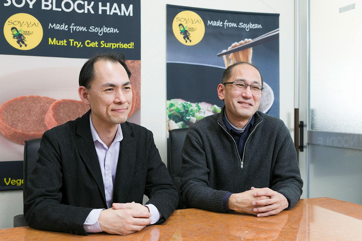 「世界にはさまざまな種類の代替肉やヴィーガンメニューがありますが、私たちはグルメの観点から、大豆ミートと日本の伝統食を掛け合わせて新しい食品をつくろうと考えました。その鍵となる素材が玄米です」と話すのは、同社代表取締役社長の市川吉徳さんです。味噌汁とご飯、油揚げと酢飯のいなりずしなど、日本人が慣れ親しんだ食文化から見ても大豆と米が合わないはずがありません。